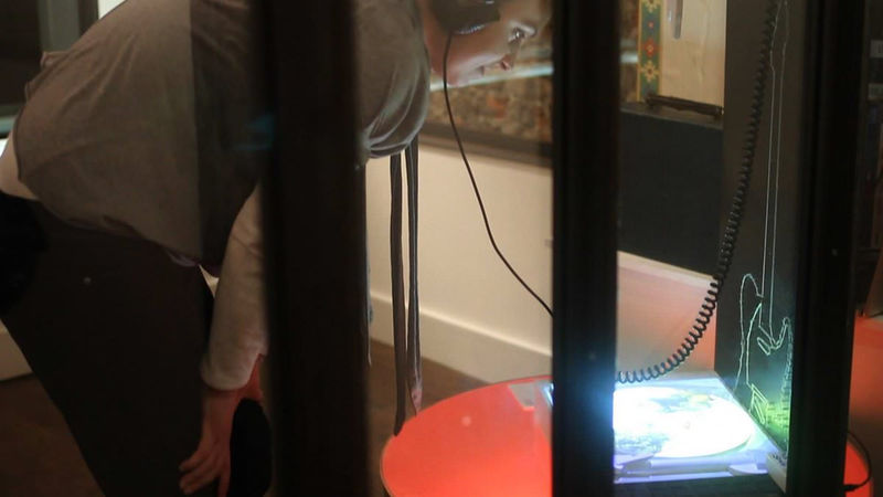 Pressing a button triggered the corresponding track's video to play in the projection, creating an interactive, seamless illusion: users "selected" songs on a retro player, but experienced modern digital video entertainment.