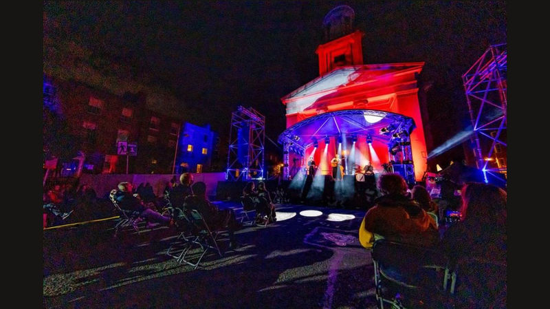 I created and performed the bespoke live visuals and projection mapping for Lisa Hannigan's set in the Am & Áit series—projected directly onto the front facade of the historic Pepper Canister Church.
